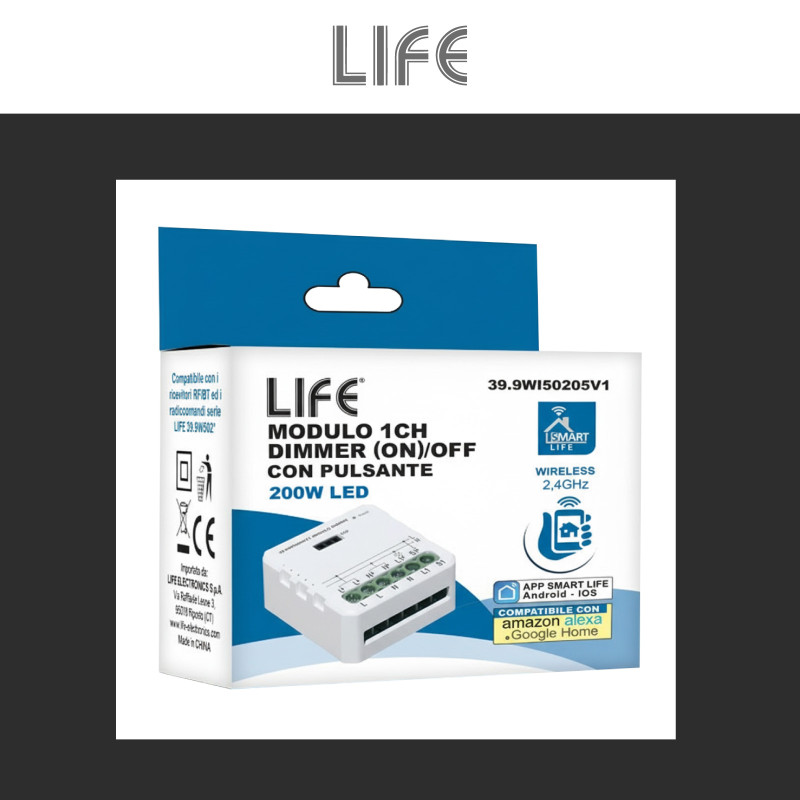Modulo Dimmer Triac 1CH Smart WiFi controllabile tramite interruttore, app ed assistenti vocali. Sfrutta la rete Wi-Fi 2,4GHz con una portata wireless di 30 metri. Alimentazione: 100-240V 50/60Hz. Corrente di uscita: 0,9 A. Potenza massima in uscita 200W LED. Compatibile con tutti gli interruttori in commercio, Amazon Alexa e Google Home. Corpo in materiale plastico e grado di protezione IP20. Controllabile tramite app. Dimensioni: 18x39x39mm.