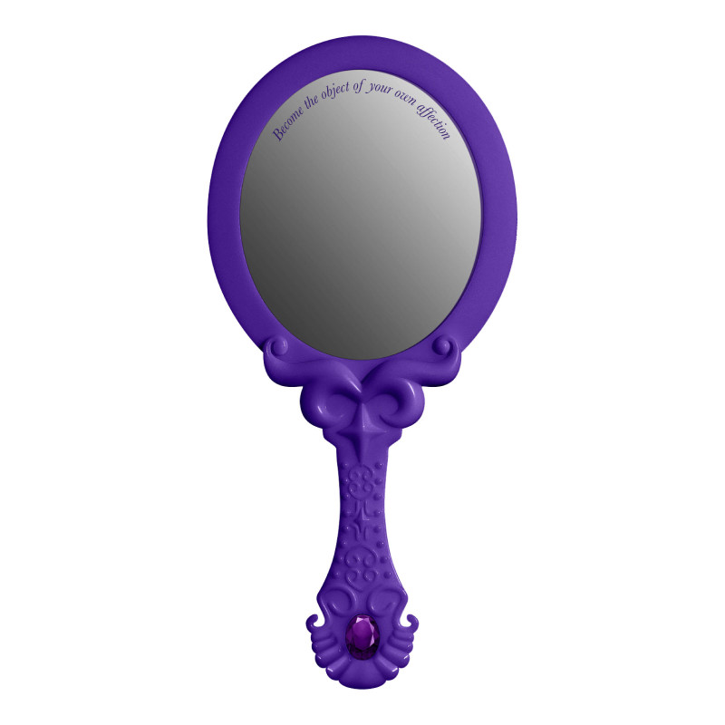 Specchio a mano con design vintage e manico decorato di colore viola. Versatile per uso quotidiano o come pezzo da esposizione sulla toeletta. Ideale per ritocchi di precisione su labbra, occhi e guance.