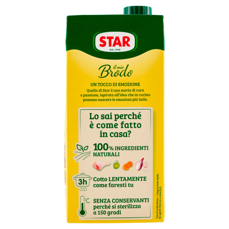 Brodo pronto a base di carne di pollo, arricchito dal gusto delicato delle verdure miste. Ideale per minestre, risotti, pasta fresca e pasta ripiena. Come fatto in casa, con ingredienti 100% naturali. Senza conservanti e senza glutine. Confezione da 1L.