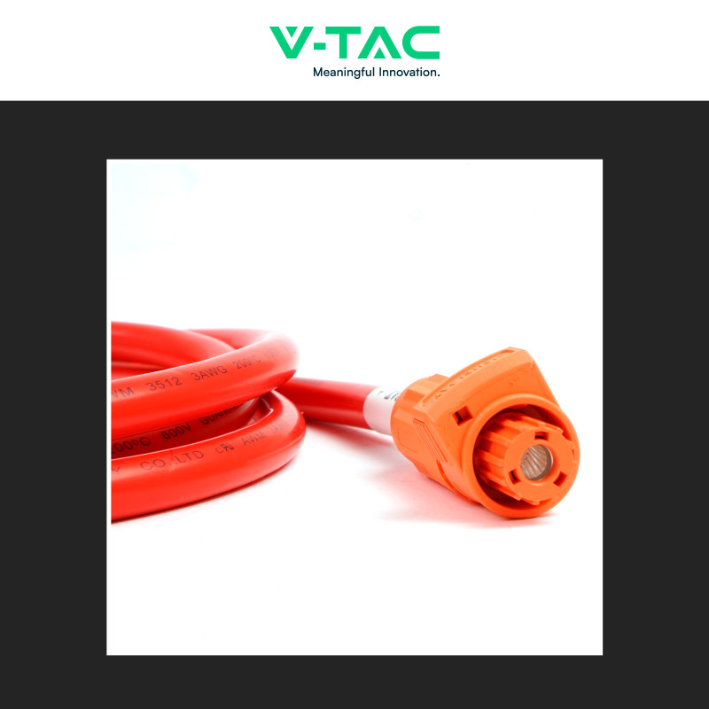 Cavo di potenza positivo per il collegamento delle batterie di accumulo di sistemi fotovoltaici. Colore: Rosso. Lunghezza: 2m.