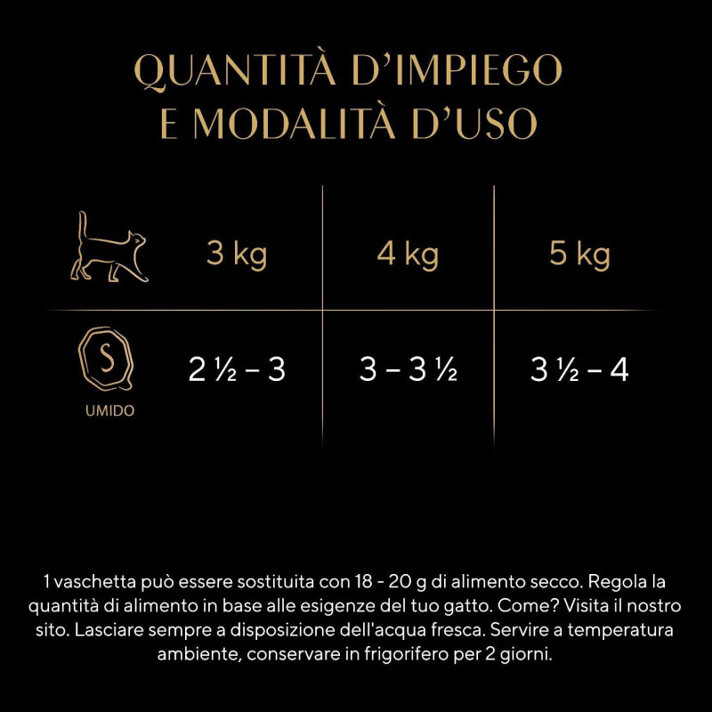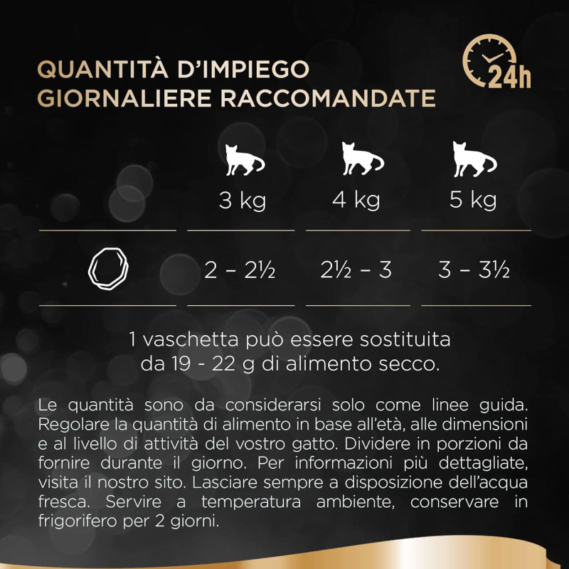 Cibo umido per gatti con tonno accompagnati da una abbondante salsa. Valore energetico 69Kcal/85g. Prodotto certificato MSC. 22 vaschette da 85g.