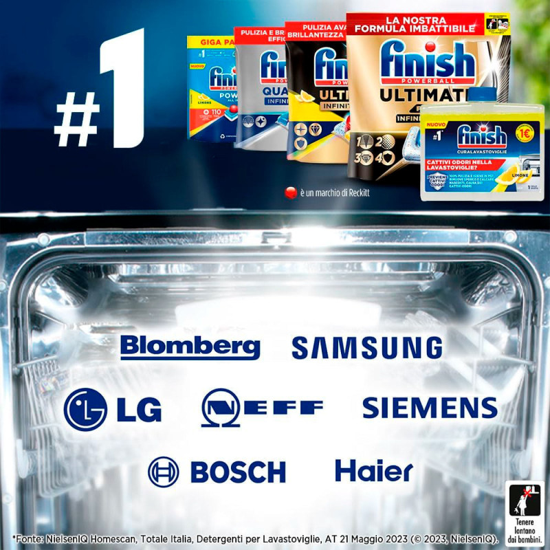 Finish Curalavastoviglie al Limone favorisce la manutenzione della lavastoviglie. Neutralizza la presenza di cattivi odori, rimuove il calcare e pulisce le parti più nascoste come tubi, bracci irroratori e filtro. Adatto a tutti i tipi di lavastoviglie. FORMULA MODALITÀ D’USO FORMATO