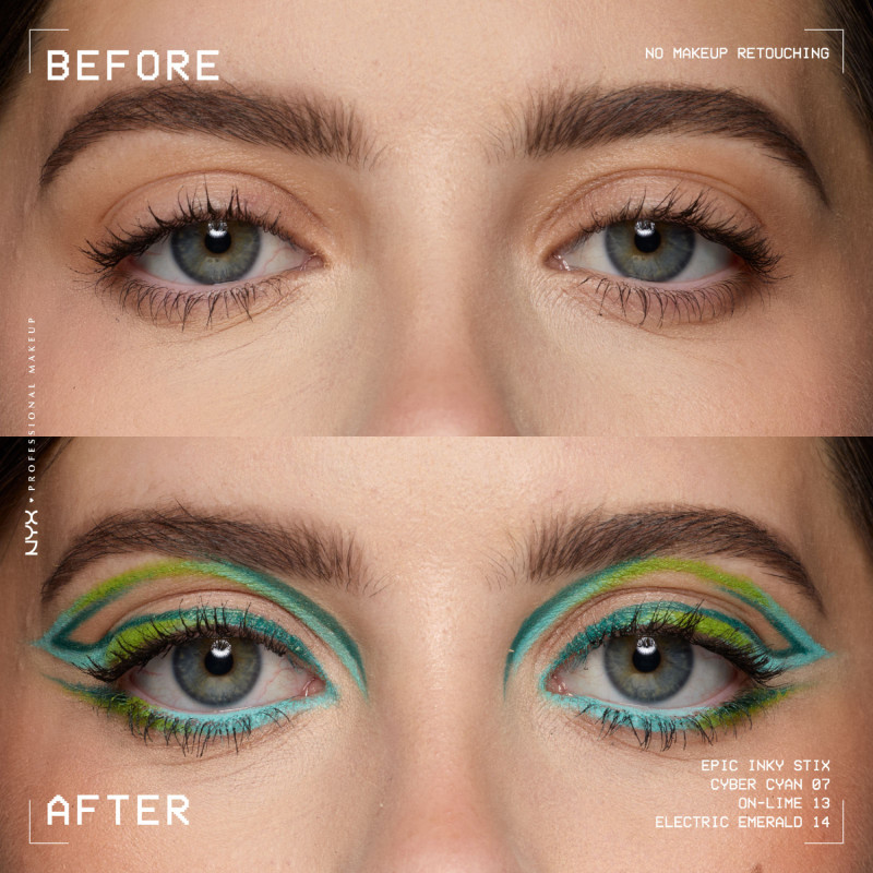 NYX Professional Makeup Epic Inky Stix eyeliner in gel cremoso waterproof con punta inclinata di precisione. Offre un colore intenso in una sola passata. La texture cremosa e pigmentata permette di creare facilmente sia linee sottili che tratti più audaci, dal look semplice a quello più deciso. FORMULA MODALITÀ D'USO COLORAZIONE |