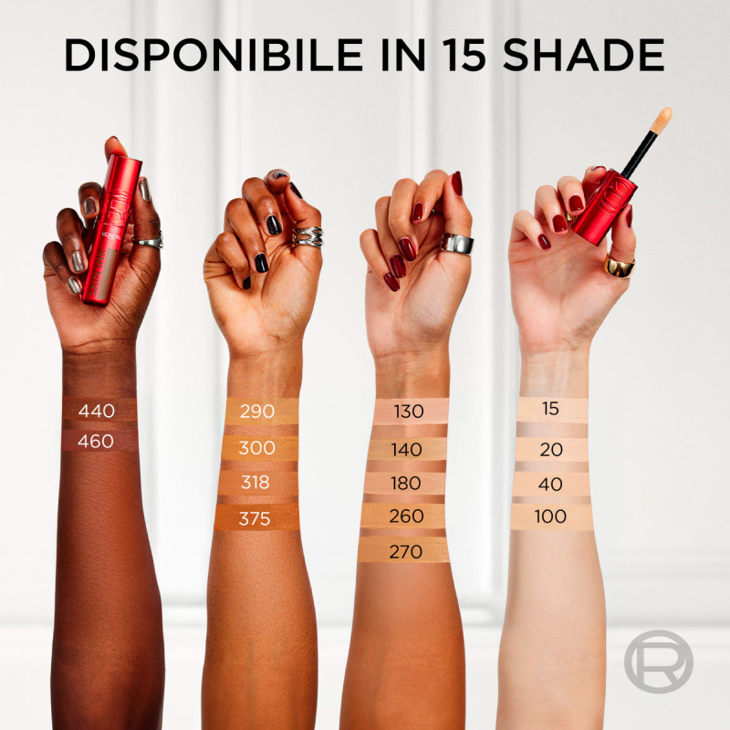Fondotinta correttore 2in1 semipermanente a lunga durata, fino a 48h. Resiste a sudore e calore. Formula a rapido assorbimento, waterproof e no transfer. Texture elastica e super aderente, si fonde con la cute e dona un finish matte. Agitare bene il prodotto prima dell'applicazione, sfumare per sezioni poiché si asciuga rapidamente. Colorazione 260. Flacone da 15ml.