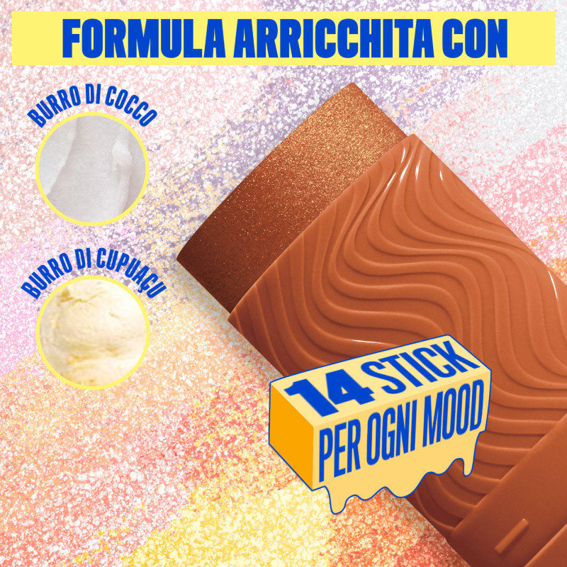 Illuminante in stick dalla texture cremosa e a lunga tenuta, fino a 8 ore. Ideale per ottenere un effetto glow luminoso e uniforme. Versatile per viso e corpo su clavicole, braccia e gambe. Formula vegana arricchita con burro di cupuaçu e cocco. Tonalità 11 Melt You Later.