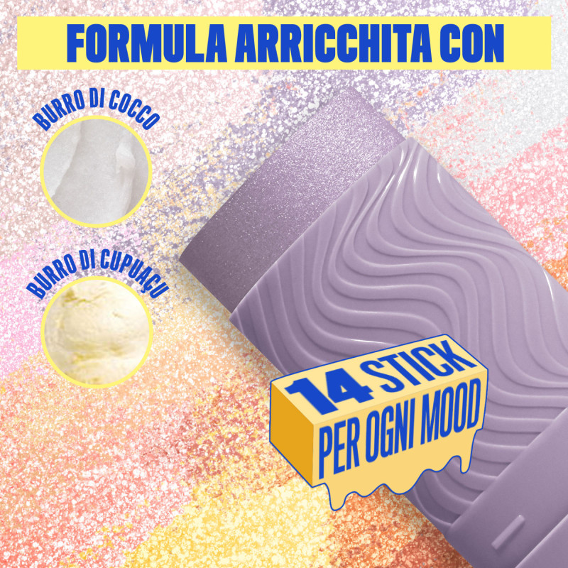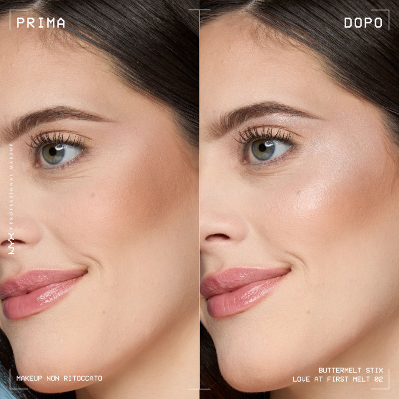 NYX Professional Makeup Buttermelt Stix illuminante in stick a lunga tenuta fino a 8 ore. Texture cremosa che si fonde perfettamente con la pelle per un effetto glow luminoso e uniforme. Gli angoli inclinati dello stick consentono un'applicazione precisa e mirata su viso e corpo FORMULA MODALITÀ D'USO COLORAZIONE |