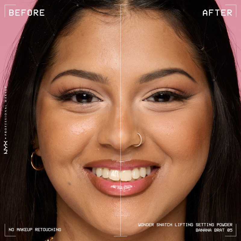 NYX Professional Makeup Wonder Snatch cipria in polvere libera fissante con texture vellutata e finish illuminante. Si sfuma facilmente e risulta leggera sulla pelle. Fino a 16 ore di tenuta, a prova di sudore. FORMULA MODALITÀ D'USO COLORAZIONE |