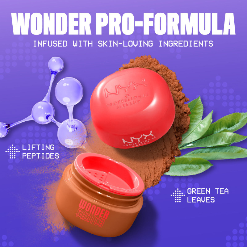 NYX Professional Makeup Wonder Snatch cipria in polvere libera fissante con texture vellutata e finish traslucido. Si sfuma facilmente e risulta leggera sulla pelle. Fino a 16 ore di tenuta, a prova di sudore. FORMULA MODALITÀ D'USO COLORAZIONE |