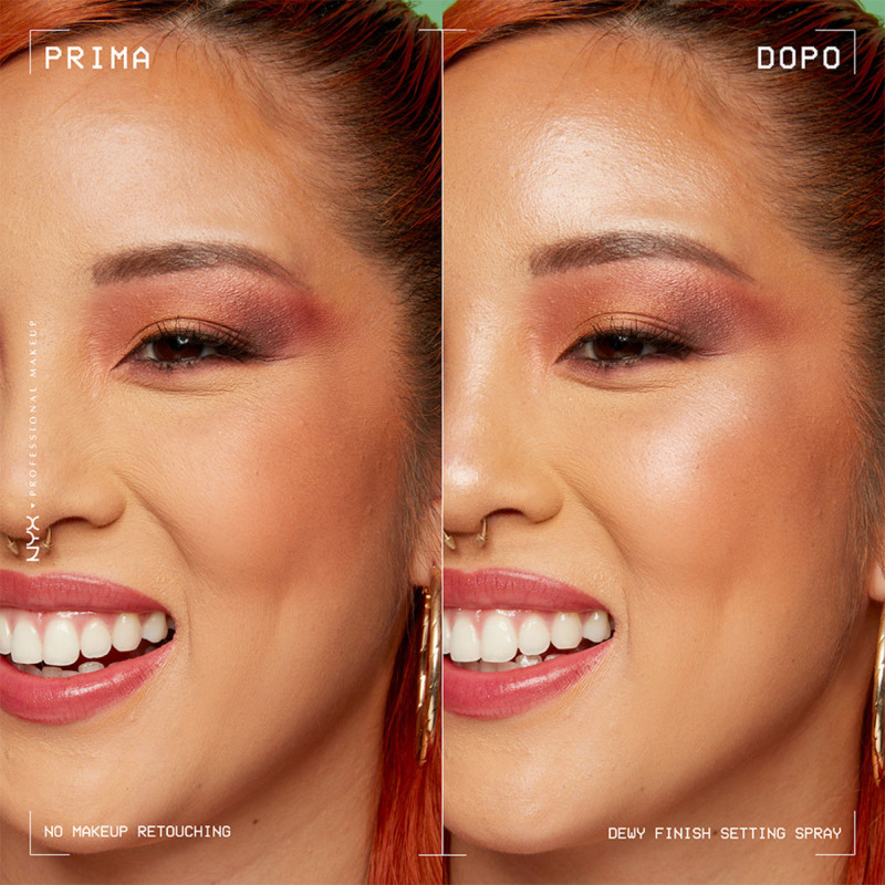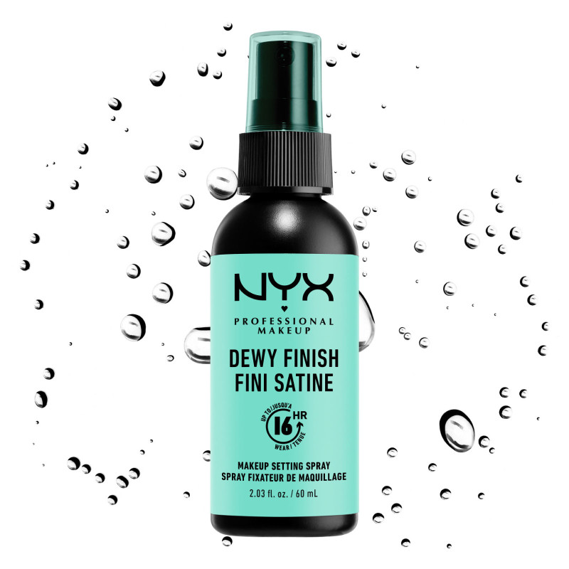 NYX Professional Makeup Dewy Finish Fini Satine spray fissante trucco a lunga tenuta, fino a 16 ore. Dona un effetto luminoso e aumenta la durata del make-up lasciando inalterati i colori. FORMULA MODALITÀ D'USO FORMATO |