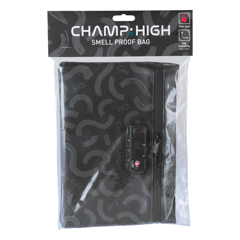 Astuccio anti odore in ecopelle a elevata capienza con ampia tasca principale. Formato large e chiusura a zip. Lucchetto TSA007 con chiusura a combinazione. Colore nero. Dimensioni: 24,5x17cm.