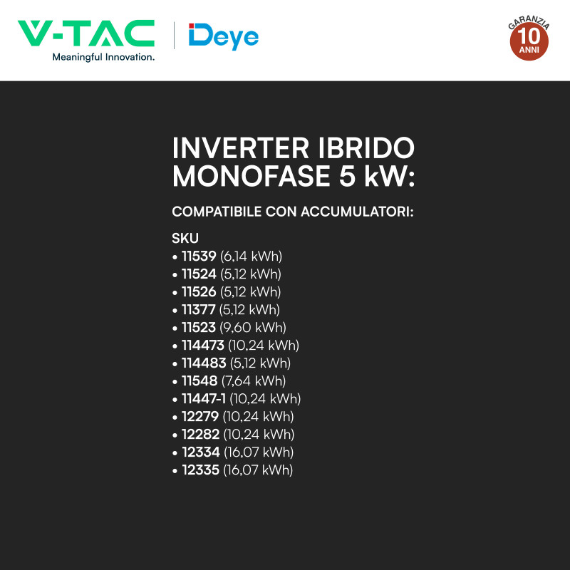 V-Tac Deye Inverter Fotovoltaico Monofase Ibrido On-Grid / Off-Grid 6kW Garanzia 10 Anni Display Touch LCD CEI 0-21 - SKU 11529