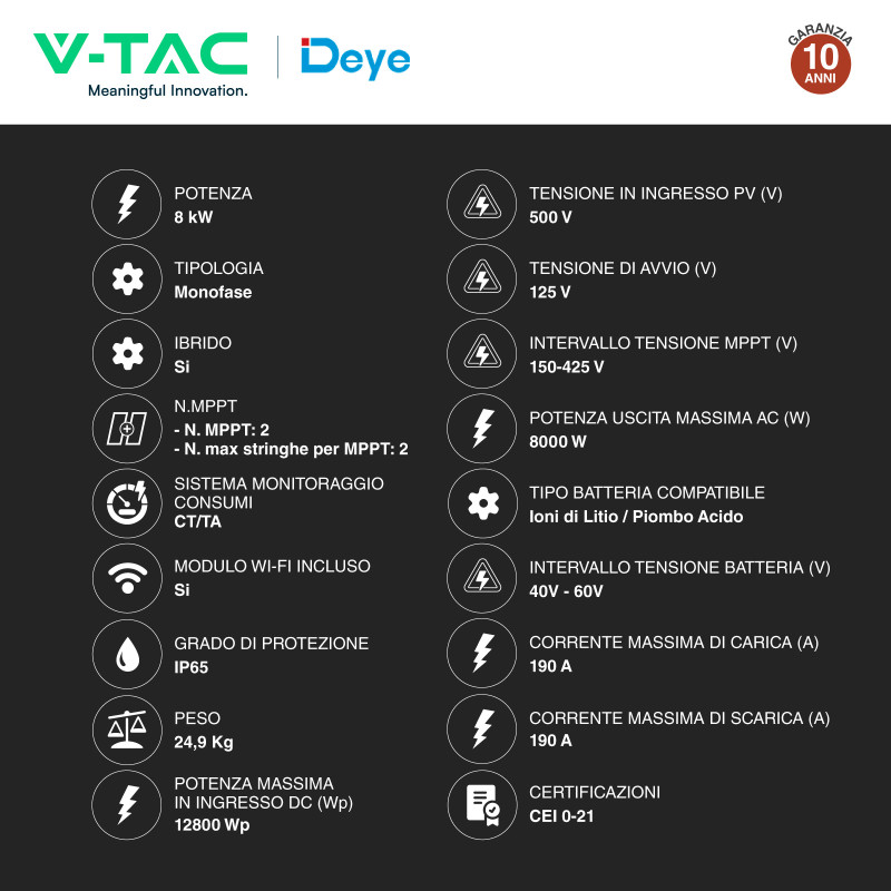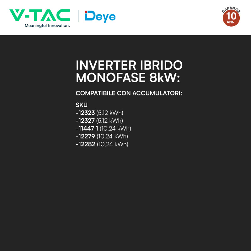 Immagine 1 - V-Tac Deye Inverter Monofase Ibrido On-Grid / Off-Grid 8kW IP65 Garanzia 10 Anni CEI 0-21 Display LCD - SKU 12310 Immagine 2 - V-Tac Deye Inverter Monofase Ibrido On-Grid / Off-Grid 8kW IP65 Garanzia 10 Anni CEI 0-21 Display LCD - SKU 12310 Immagine 3 - V-Tac Deye Inverter Monofase Ibrido On-Grid / Off-Grid 8kW IP65 Garanzia 10 Anni CEI 0-21 Display LCD - SKU 12310 Immagine 4 - V-Tac Deye Inverter Monofase Ibrido On-Grid / Off-Grid 8kW IP65 Garanzia 10 Anni CEI 0-21 Display LCD - SKU 12310 Immagine 5 - V-Tac Deye Inverter Monofase Ibrido On-Grid / Off-Grid 8kW IP65 Garanzia 10 Anni CEI 0-21 Display LCD - SKU 12310 Immagine 6 - V-Tac Deye Inverter Monofase Ibrido On-Grid / Off-Grid 8kW IP65 Garanzia 10 Anni CEI 0-21 Display LCD - SKU 12310 Immagine 7 - V-Tac Deye Inverter Monofase Ibrido On-Grid / Off-Grid 8kW IP65 Garanzia 10 Anni CEI 0-21 Display LCD - SKU 12310 Immagine 8 - V-Tac Deye Inverter Monofase Ibrido On-Grid / Off-Grid 8kW IP65 Garanzia 10 Anni CEI 0-21 Display LCD - SKU 12310