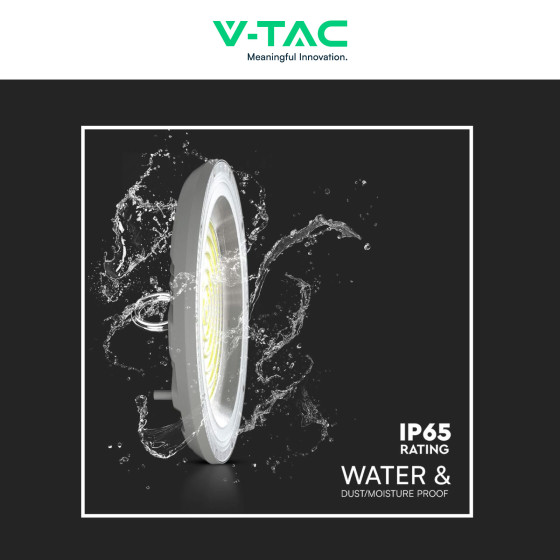 Lampada LED High Bay rotonda a sospensione con potenza di 100W e tecnologia LED SMD. Fascio luminoso di 90° e flusso luminoso di 8300 lm. Rapporto di 83 lm/W. Corpo in alluminio di colore grigio e copertura trasparente. Grado di protezione IP65 per uso esterno. Driver e gancio per installazione a sospensione incorporati. CCT 3in1 settabile a: Luce Bianca Calda 3000K, Naturale 4000K e Fredda 6500K. Classe energetica F e resa cromatica >80. Dimensioni: Ø235x32x68mm.