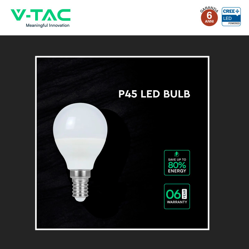 V-Tac VT-270 Lampadina LED E14 6,5W MiniGlobo P45 SMD Chip CREE - SKU 218636 / 218646 / 218656
