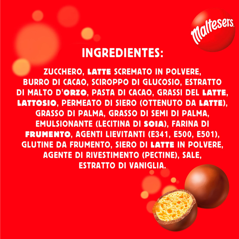 Le Maltesers sono praline al malto croccanti ricoperte di cioccolato al latte. Il modo più leggero di gustare il cioccolato. Perfette per qualsiasi occasione di condivisione e divertimento. Da sgranocchiare ovunque: in viaggio, davanti alla tv, al cinema, in un dolce o su un gelato. Riceverai un box con 25 bustine di Maltesers da 37g confezionate singolarmente. |