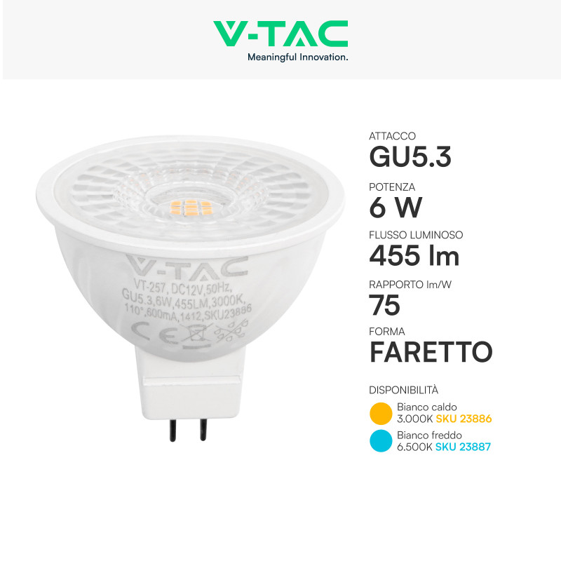 Immagine 1 - V-Tac VT-257 Lampadina LED GU5.3 6W Faretto MR16 SMD - SKU 23886 / 23887 Immagine 4 - V-Tac VT-257 Lampadina LED GU5.3 6W Faretto MR16 SMD - SKU 23886 / 23887 Immagine 5 - V-Tac VT-257 Lampadina LED GU5.3 6W Faretto MR16 SMD - SKU 23886 / 23887 Immagine 6 - V-Tac VT-257 Lampadina LED GU5.3 6W Faretto MR16 SMD - SKU 23886 / 23887 Immagine 7 - V-Tac VT-257 Lampadina LED GU5.3 6W Faretto MR16 SMD - SKU 23886 / 23887 Immagine 8 - V-Tac VT-257 Lampadina LED GU5.3 6W Faretto MR16 SMD - SKU 23886 / 23887 Immagine 9 - V-Tac VT-257 Lampadina LED GU5.3 6W Faretto MR16 SMD - SKU 23886 / 23887 Immagine 10 - V-Tac VT-257 Lampadina LED GU5.3 6W Faretto MR16 SMD - SKU 23886 / 23887