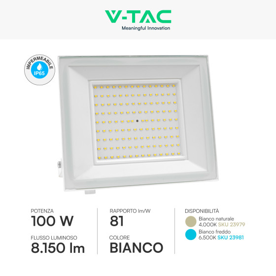 V-Tac VT-44109 Faro LED 100W Faretto SMD IP65 Colore Bianco - SKU 23979 / 23981