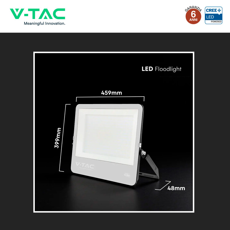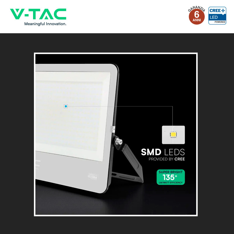 Faro LED SMD con chip CREE e potenza di 300W. Corpo in alluminio di colore nero con copertura opaca. Fascio luminoso di 115°, flusso luminoso di 34440 lm e alta luminosità con rapporto di 114 lm/W. Grado di protezione IP65. Classe energetica D e resa cromatica >70. Disponibile con: Luce Bianca Fredda 6500K. Garanzia: 6 anni. Dimensioni: 459x399x48mm. Lunghezza cavo: 1m.