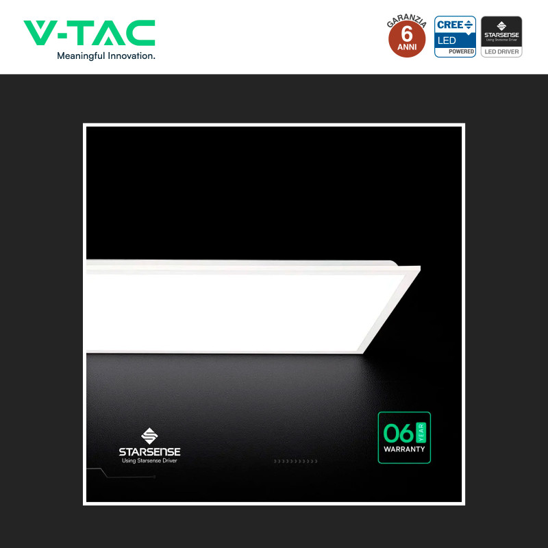 Pannelli LED rettangolari con potenza di 40W e tecnologia LED CREE SMD. Fascio luminoso di 110°, flusso luminoso di 4800 lm e alta luminosità con rapporto di 120 lm/W. Corpo di colore bianco in Fe e PS con copertura opaca. Installazione a incasso. Disponibili con: Luce Bianca Naturale 4000K e Fredda 6500K. Classe energetica E. Garanzia 6 anni. Driver Starsense inclusi. Dimensioni: 1195x295x33mm.