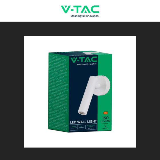 V-Tac VT-412-M Lampada LED da Muro 2W SMD Applique da Lettura Orientabile Colore Bianco - SKU 10292 / 10293