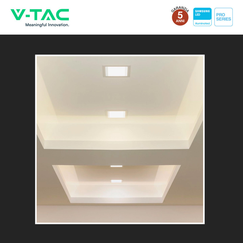 Mini pannello LED quadrato con potenza di 18W e tecnologia LED Samsung SMD. Fascio luminoso 360°, flusso luminoso fino a 1980lm ed alta luminosità con rapporto fino a 110 lm/W. Corpo in plastica di colore bianco con copertura opaca. Installazione a incasso. Disponibile con: Luce Bianca Calda 3000K (1850 lm, classe energetica F), Naturale 4000K (1980 lm, classe energetica E) e Fredda 6500K (1980 lm, classe energetica E). Resa cromatica >80 . Driver integrato e garanzia 5 anni. Dimensioni: 220,4x220,4x28,8mm. Dimensioni incasso: 150~155mm.