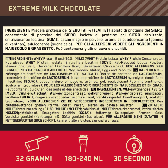 Optimum Nutrition Gold Standard 100% Whey Gusto Cioccolato al Latte, proteine e aminoacidi in polvere a rapida assimilazione, derivati dal siero del latte. Ottimo per favorire il recupero post allenamento e la crescita della massa muscolare. Barattolo da 768g 24 porzioni totali, con misurino.