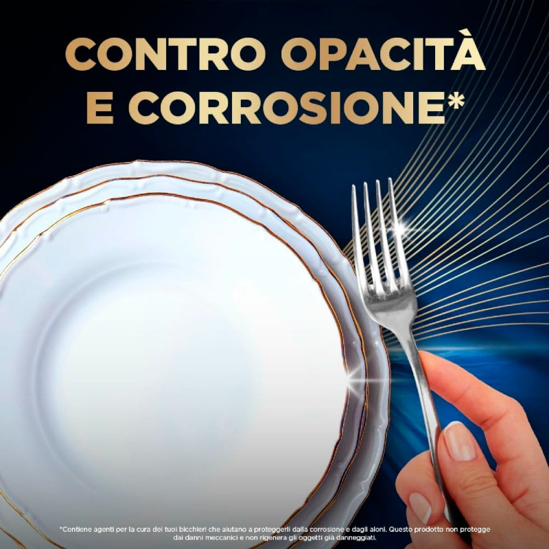 Detersivo in pastiglie per lavastoviglie con fragranza al limone e con scudo protettivo contro lo sporco e residui incrostati. Formula in grado di rimuovere le macchie di bruciato anche senza prelavaggio, agendo con azioni differenti lungo l’intero ciclo di lavaggio. Per stoviglie sempre pulite e brillanti lavaggio dopo lavaggio. Confezione da 48 Tabs.