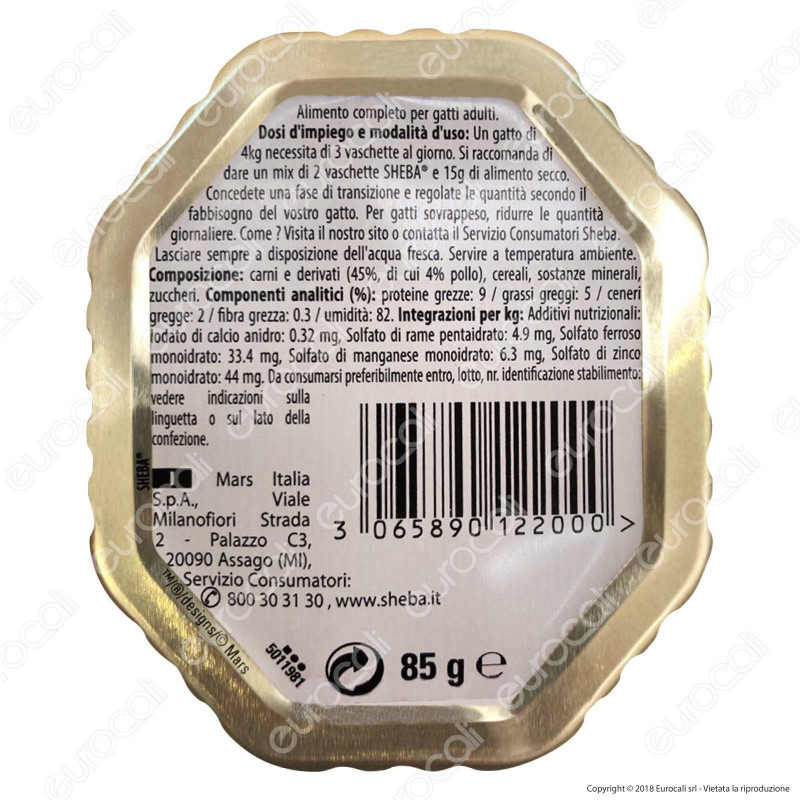 Cibo umido per gatti al gusto vitello e tacchino. Valore energetico 72Kcal/85g. 22 vaschette da 85g.