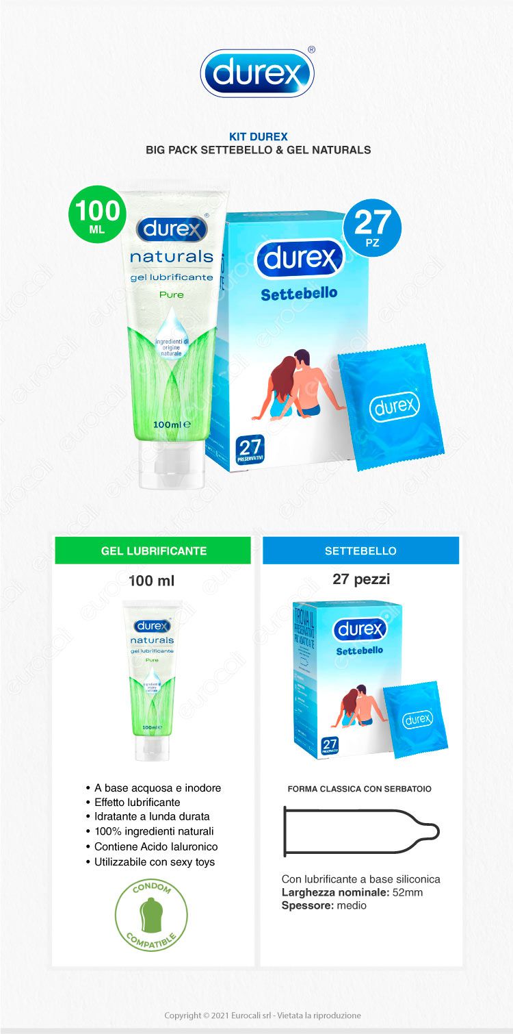 Kit composto da: 1 gel Naturals Pure da 100ml e 1 confezione di Durex Settebello da 27 preservativi classici.
