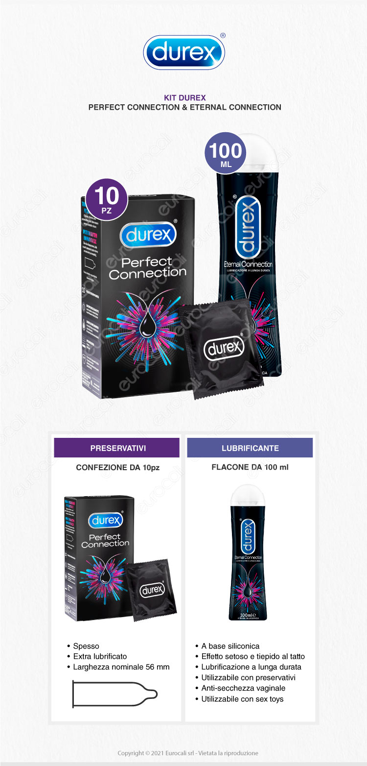 Kit composto da: 1 gel Eternal Connection da 100ml e 1 confezione di Durex Perfect Connection da 10 preservativi.