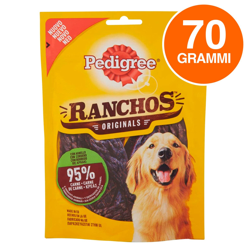 Pedigree Ranchos Originals sono strisce di carne dalla consistenza gommosa per cani al gusto di agnello. Fatte con il 95% di carne. Con ottimi ingredienti sono ideali da utilizzare come premi per il cane. Non contengono coloranti o aromi artificiali. Favoriscono uno stile di vita sano grazie alle vitamine e minerali in essi contenuti. L'adeguata somministrazione giornaliera è: Confezione da 70 grammi. |