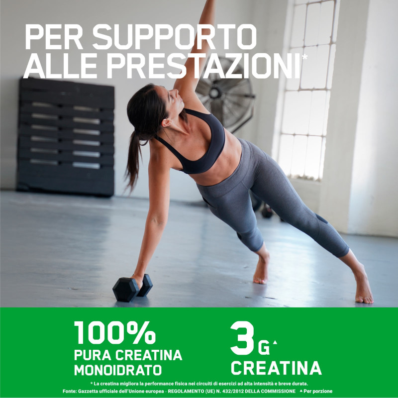 Aminoacidi in capsule e creatina in polvere. Mega-Size BCAA 1000 Caps (2 capsule) contiene 1000mg di aminoacidi essenziali. Barattolo 400 capsule. Micronised Creatine (1 misurino - 3,4g) contiene 3g di creatina. Barattolo da 317g, 93 porzioni.