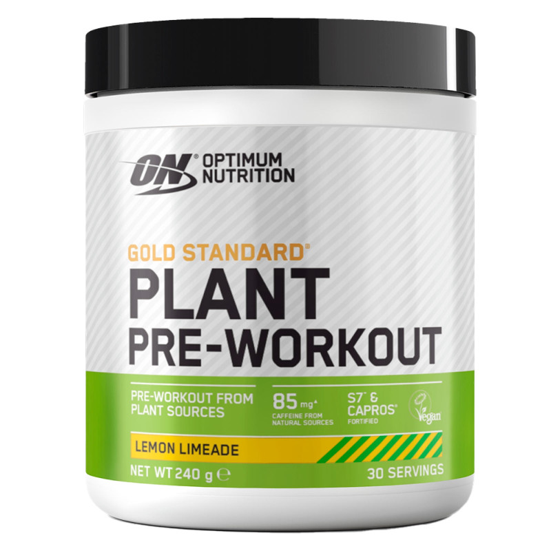 Optimum Nutrition Gold Standard Plant Pre-Workout gusto Limone e Lime, integratore in polvere a base vegetale, ideato per sportivi e atleti che seguono una dieta vegana o vegetariana. Da assumere prima dell'allenamento per migliorare la concentrazione e massimizzare le prestazioni. Ogni porzione (1 misurino - 8g) contiene 85mg di caffeina estratta da fonti naturali. Inoltre il prodotto racchiude una preziosa miscela chiamata s7 composta da estratti vegetali come tè verde e caffè verde. Infine, contiene anche Capros, un antiossidante derivato dall'uva spina indiana. La formula è 100% vegana e non contiene stimolanti, aromi, coloranti e dolcificanti artificiali. MODALITÀ D'USO • Aggiungere una dose di 8g corrispondente a 1 misurino in 250ml di acqua fredda • Agitare per 30 secondi fino a completa dissoluzione della polvere • Si consiglia di assumere il prodotto 30 minuti prima dell'allenamento