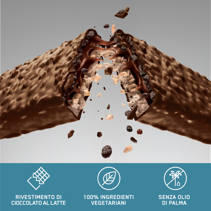 Snack ad alto contenuto proteico. Con ingredienti come uvetta, arachidi, cereali, burro di arachidi e cioccolato. Ogni barretta contiene 20g di proteine isolate. Da consumare pre o post allenamento per il mantenimento e potenziamento muscolare. Confezione da 30 barrette miste.