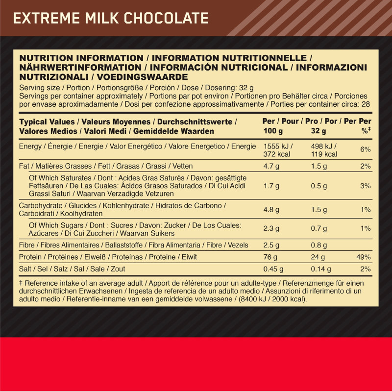 Gold Standard 100% Whey (1 misurino - 31g) contiene 24g di proteine e 5,5g di aminoacidi. Barattolo da 896g, 28 porzioni. Gold Standard 100% Casein (1 misurino - 33g) contiene 24g di proteine e 10g di aminoacidi essenziali. Barattolo da 924g, 28 porzioni totali.