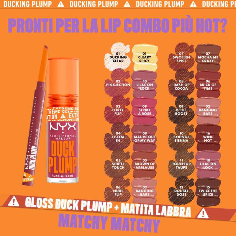 NYX Professional Makeup Duck Plump Pulmping Lip Liner matita labbra automatica a effetto rimpolpante. A lunga tenuta, fino a 12h. Dotata di punta di precisione a doppio taglio che consente di definire, modellare e riempire le labbra. FORMULA MODALITÀ D'USO AVVERTENZE COLORAZIONE |