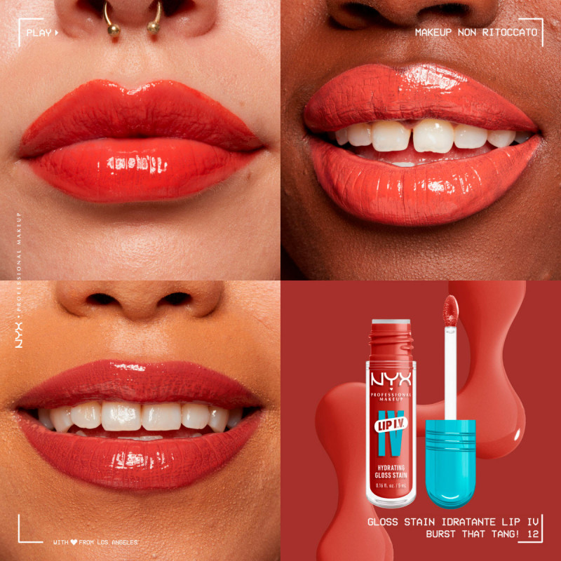 NYX Professional Makeup Lip I.V. Gloss Stain lucidalabbra idratante e tinta labbra 2in1 a lunga tenuta, fino a 12 ore. Altamente pigmentato e a effetto bagnato, garantisce colori intensi, vivaci e brillanti ma sempre naturali. FORMULA MODALITÀ D'USO CONSIGLI COLORAZIONE FORMATO |