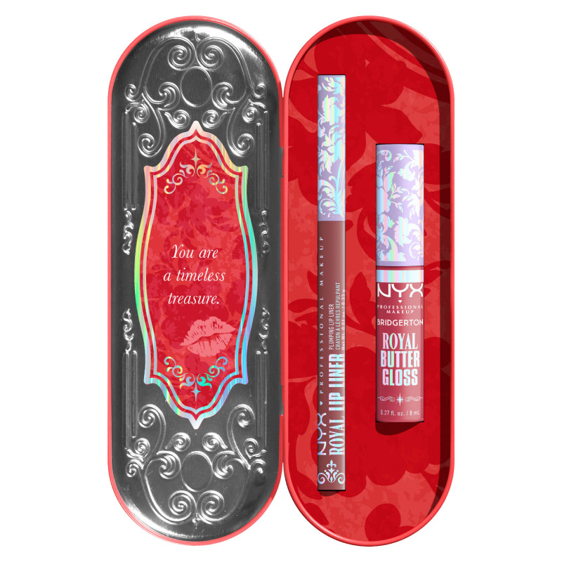NYX Professional Makeup Bridgerton Royal Kit 01 Duo Labbra con matita rimpolpante e gloss. Il lucidalabbra Royal Butter Gloss garantisce un finish brillante e vellutato che non appiccica, mentre la matita Royal Lip Liner volumizza le labbra per un effetto pieno e definito. La combinazione dei due prodotti assicura un risultato sofisticato e una tenuta ottimale. Edizione limitata ispirata alle atmosfere di Bridgerton FORMULA MODALITÀ D'USO CONTENUTO DELLA CONFEZIONE |