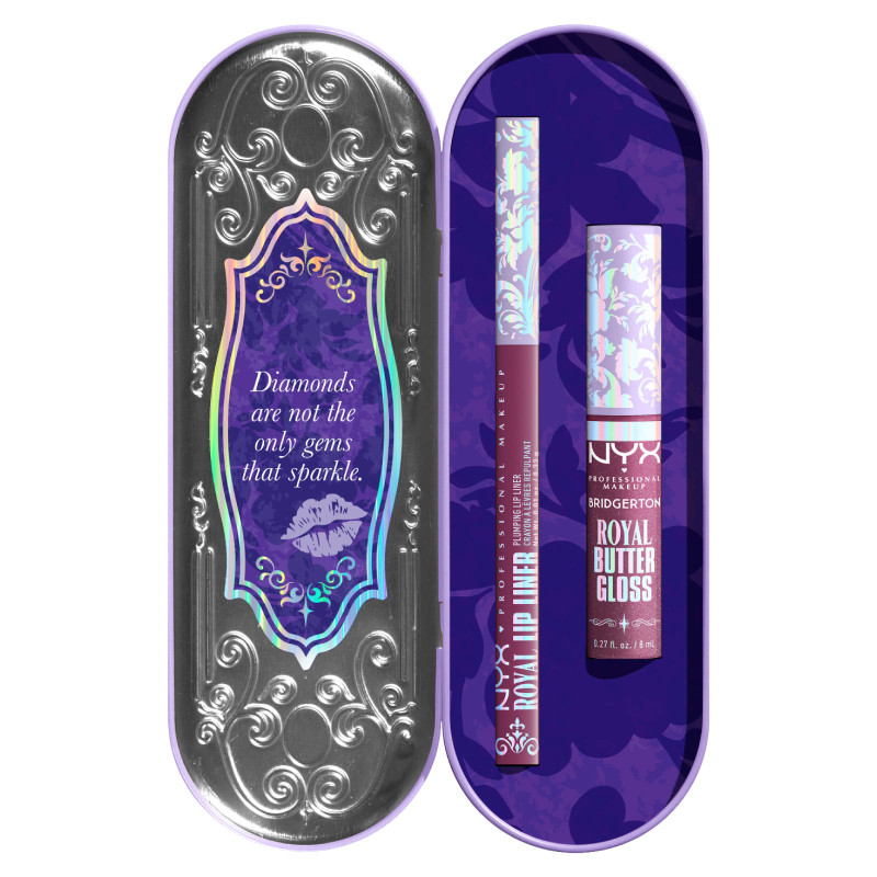 NYX Professional Makeup Bridgerton Royal Kit 02 Duo Labbra con matita rimpolpante e gloss. Il lucidalabbra Royal Butter Gloss garantisce un finish brillante e vellutato che non appiccica, mentre la matita Royal Lip Liner volumizza le labbra per un effetto pieno e definito. La combinazione dei due prodotti assicura un risultato sofisticato e una tenuta ottimale. Edizione limitata ispirata alle atmosfere di Bridgerton FORMULA MODALITÀ D'USO CONTENUTO DELLA CONFEZIONE |