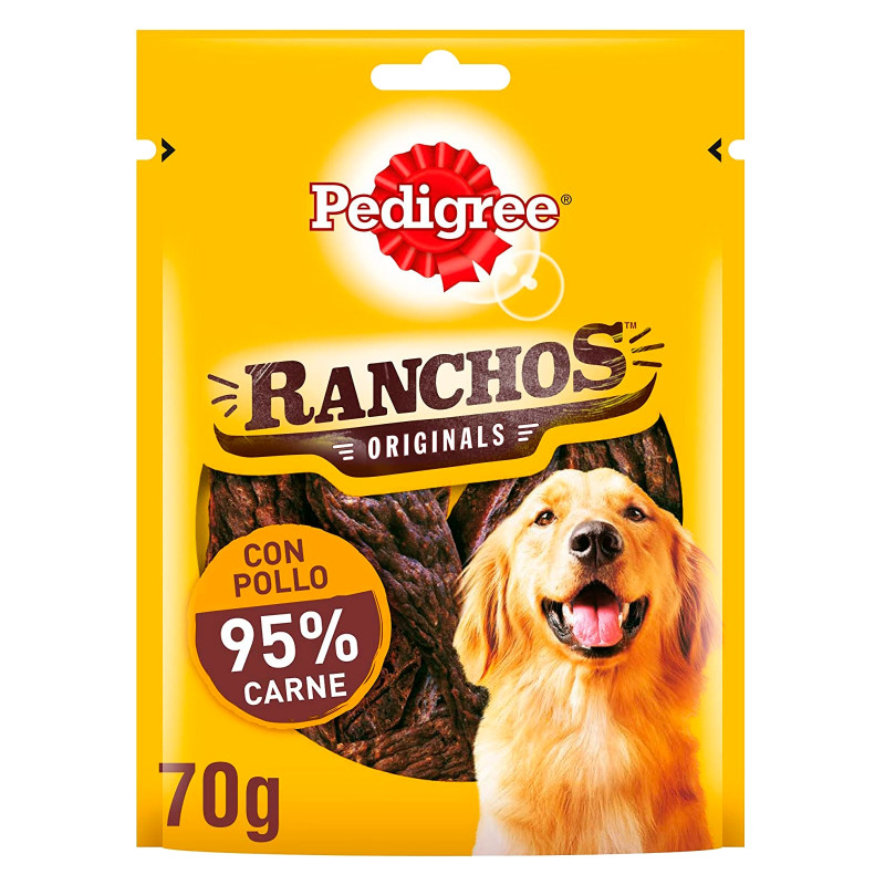 Pedigree Ranchos Originals sono strisce di carne dalla consistenza gommosa per cani al gusto di pollo. Fatte con il 95% di carne. Con ottimi ingredienti sono ideali da utilizzare come premi per il cane. Non contengono coloranti o aromi artificiali. Favoriscono uno stile di vita sano grazie alle vitamine e minerali in essi contenuti. L'adeguata somministrazione giornaliera è: Confezione da 70 grammi. |
