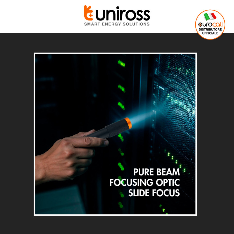Torcia elettrica compatta con potenza di 3W e tecnologia LED. Realizzata in alluminio ad alta resistenza di colore nero e arancione. Flusso luminoso fino a 280 lm, portata fino a 90m e rapporto fino a 93 lm/W. 3 modalità selezionabili tramite pulsante ON/OFF per regolare flusso luminoso e distanza del fascio luminoso. Funzione SOS e grado di protezione IPX4. Dotata di clip da cintura. Garanzia 5 anni. 2 batterie alcaline AAA 1,5V incluse. Dimensioni: Ø12x133mm.
