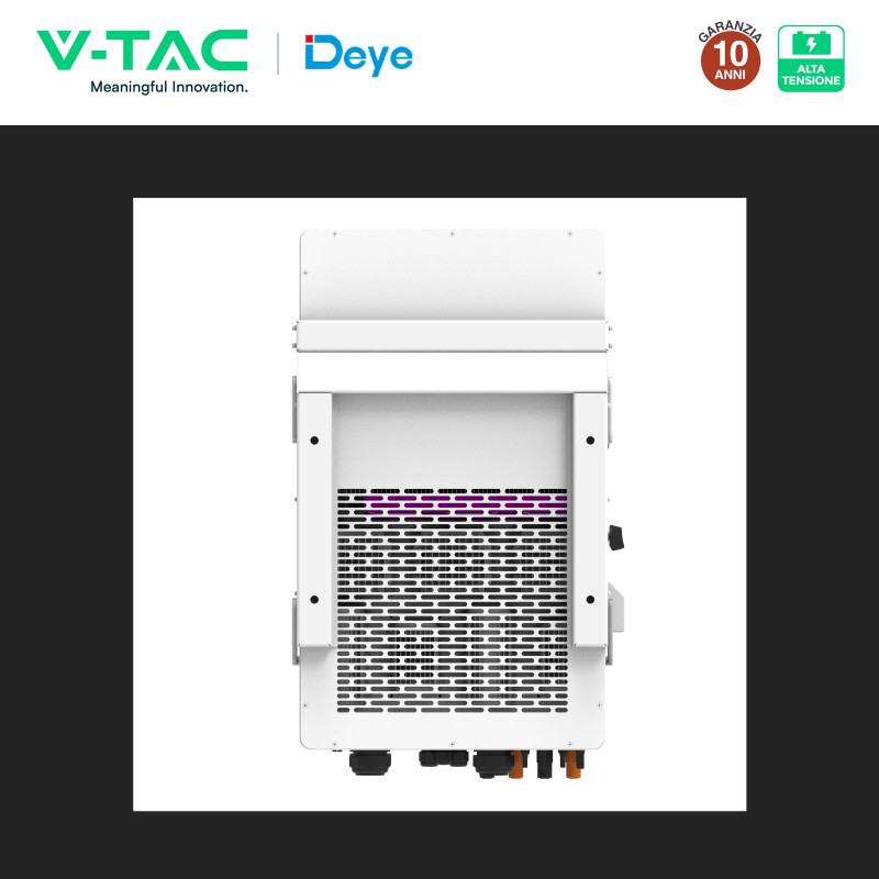 Inverter ibrido On-Grid / Off-Grid per pannelli solari di impianti fotovoltaici industriali. Potenza di 30kW e tensione in ingresso di 1000V. Predisposto per l'installazione a parete, pannello di controllo con display LCD e grado di protezione IP65 per uso esterno. Sistema trifase ad alta efficienza MPPT (>99%). Sistema di monitoraggio CT/TA. Inclusi accessori per l'installazione e modulo Wi-Fi. Certificato CEI 0-21 e CEI 0-16. Garanzia 10 anni. Dimensioni: 527x894x294mm. Peso: 80Kg.