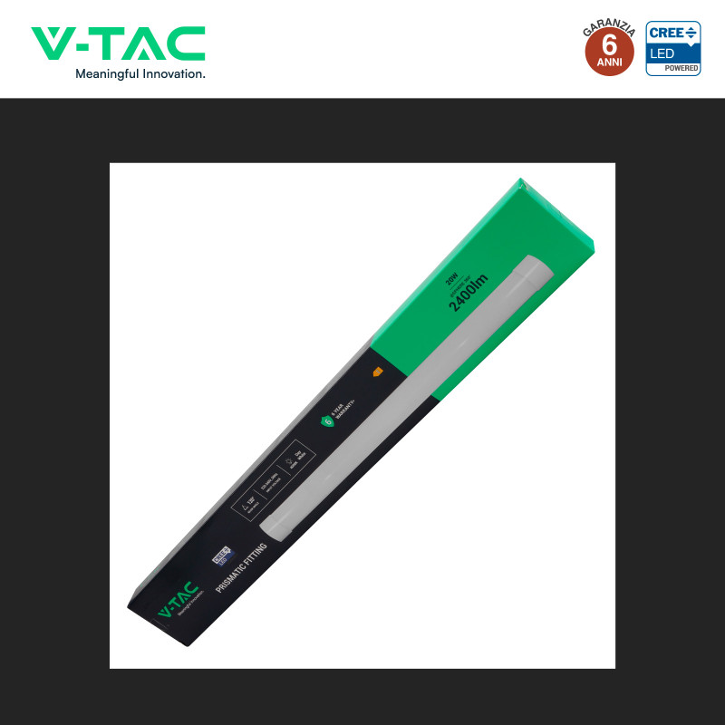 Plafoniera LED SMD con chip CREE e potenza di 20W. Forma sottile realizzata in materiale termoplastico con copertura opaca. Fascio luminoso di 120°, flusso luminoso fino a 2400 lm e alta luminosità con rapporto fino a 120 lm/W. Installazione a superficie. Disponibile con: Luce Bianca Calda 3000K (2050 lm, classe energetica F), Naturale 4000K (2400 lm, classe energetica E) e Fredda 6500K (2400 lm, classe energetica E). Resa cromatica >80. Kit di installazione e connettore con morsetti a clip inclusi. Garanzia: 6 anni. Dimensioni: 566x76x24mm.