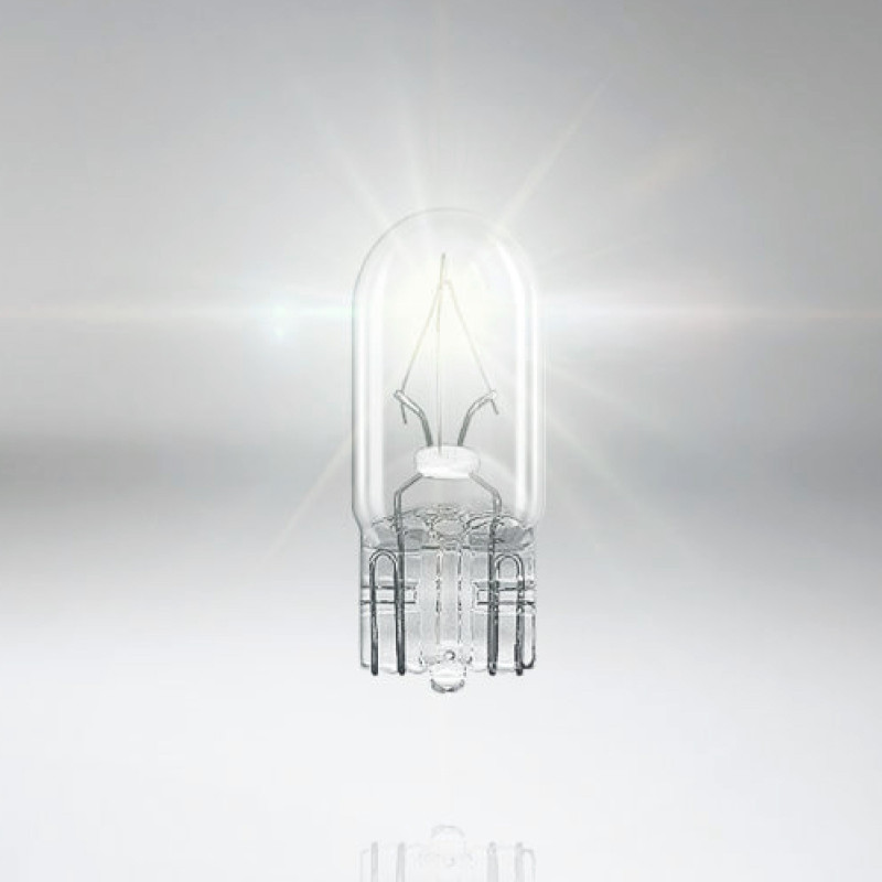 Lampadina per auto con attacco W3W, potenza di 3W, tensione 12V e flusso luminoso di 22 ±30% lumen. Dimensioni: Ø10,0x25,4 mm. Confezione da 2 lampadine.